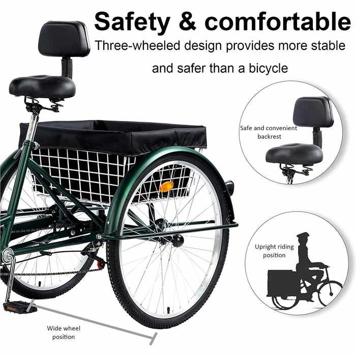 who want to enjoy outdoor activities while getting some exercise. With its 7-speed system and large basket for storage, this three wheel bike provides a comfortable and practical way to cruise around town.