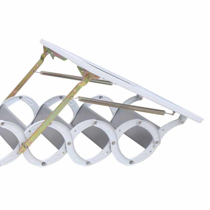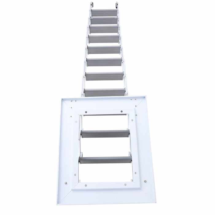 The sturdy aluminum construction of this garage attic ladder ensures durability and longevity, while the pull down stairs can safely support up to 330 pounds of weight.