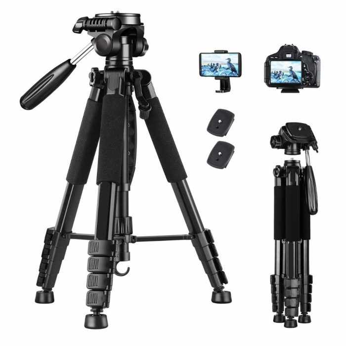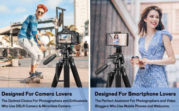 Abundant accessories: The camera tripod has 1+1 additional universal 1/4-inch quick release plates for convenient device switching. It also has a maximum phone folder of 3.5 inches, which is compatible with most mobile phones. A soft sponge grip is also included with the tripod for a secure hold in all conditions.
