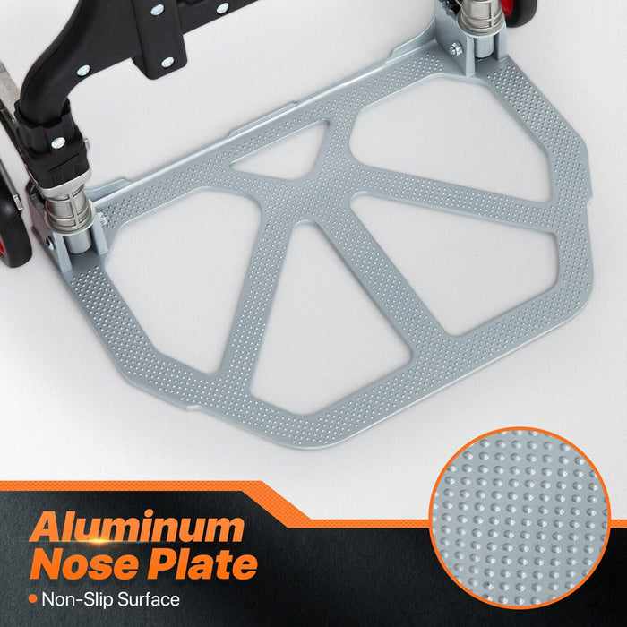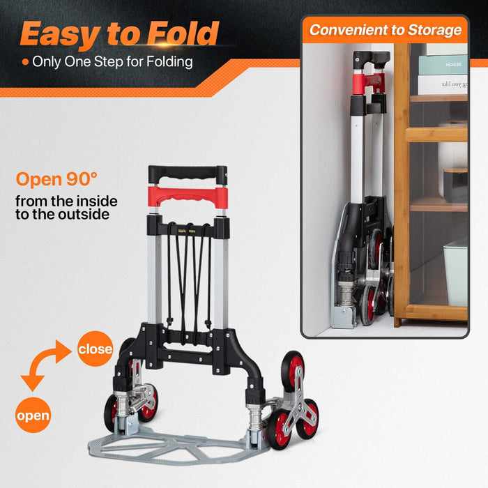 The collapsible design of the hand dolly also allows for easy storage and transportation. This climbing stair cart can be easily folded for storage and can be transported in the trunk of a car. This makes it a great solution for those who need to move heavy items frequently but also need to save on space.
