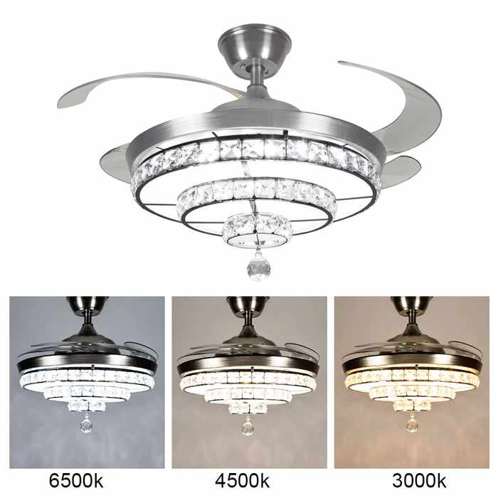 This ceiling fan with chandelier light also features a color-changing light option, allowing you to adjust the light temperature from 3000K to 6000K, to suit your mood or needs. The chandelier ceiling fan's retractable blades provide an additional layer of convenience, making it easy to adjust the airflow direction and speed to suit your preferences.