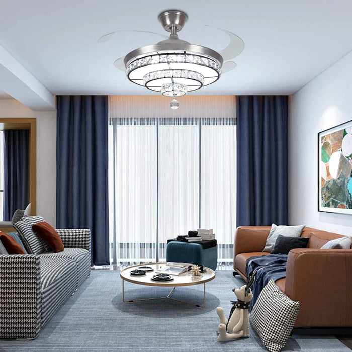 Our crystal ceiling fan provides both form and function, delivering a soft and comfortable breeze while lighting up your space. With its modern design, this chandelier fan light is perfect for any contemporary home or office, adding a touch of sophistication to your decor.