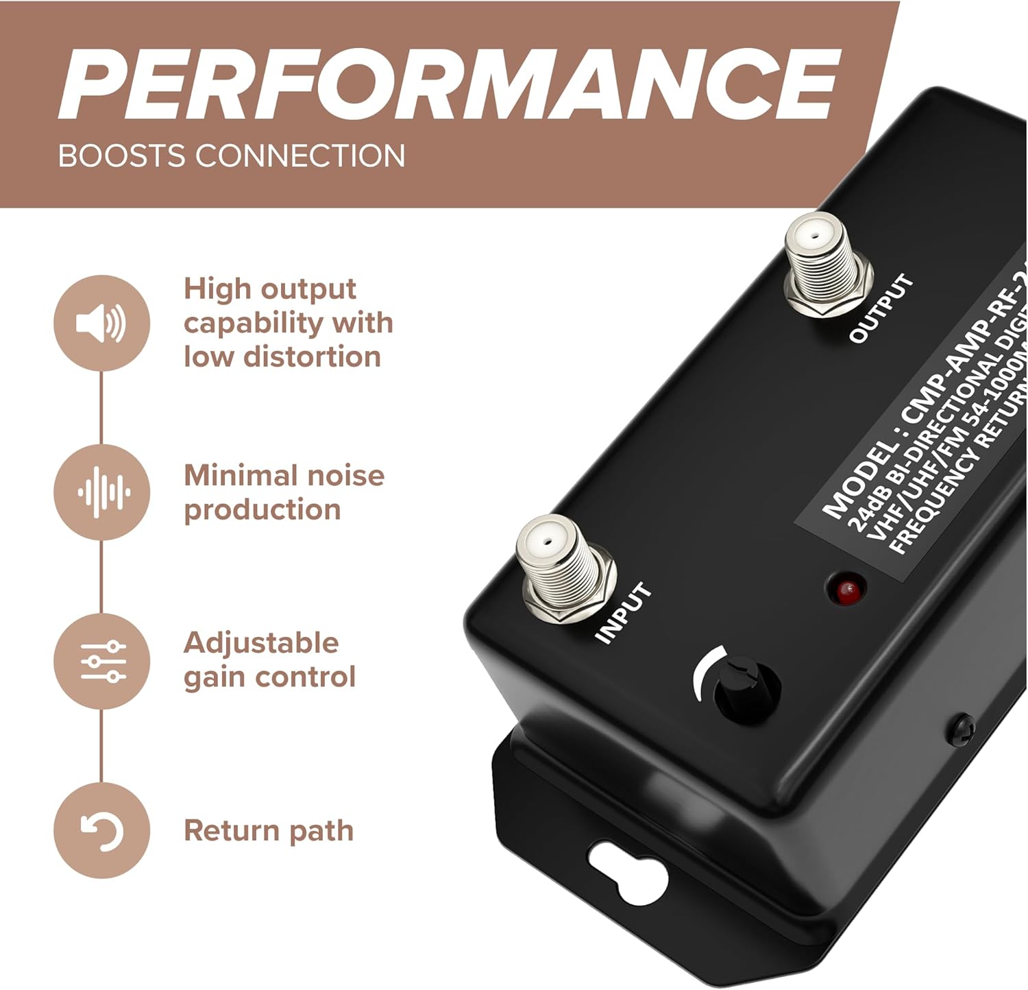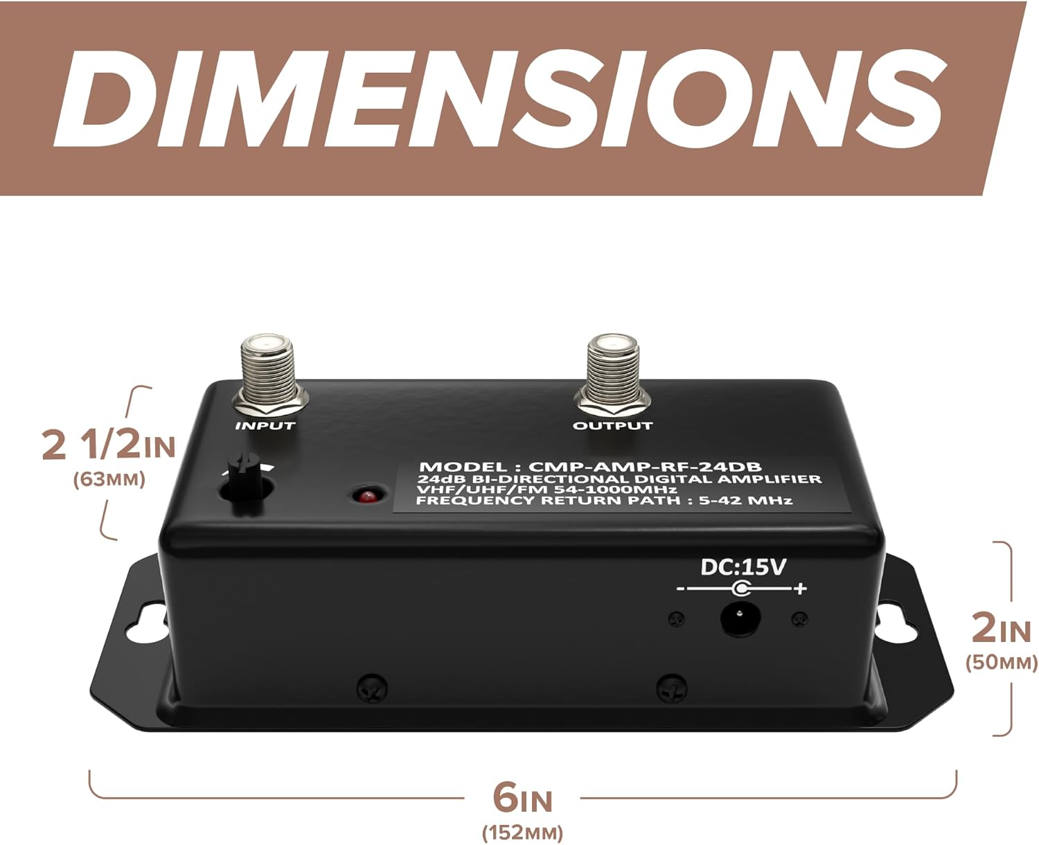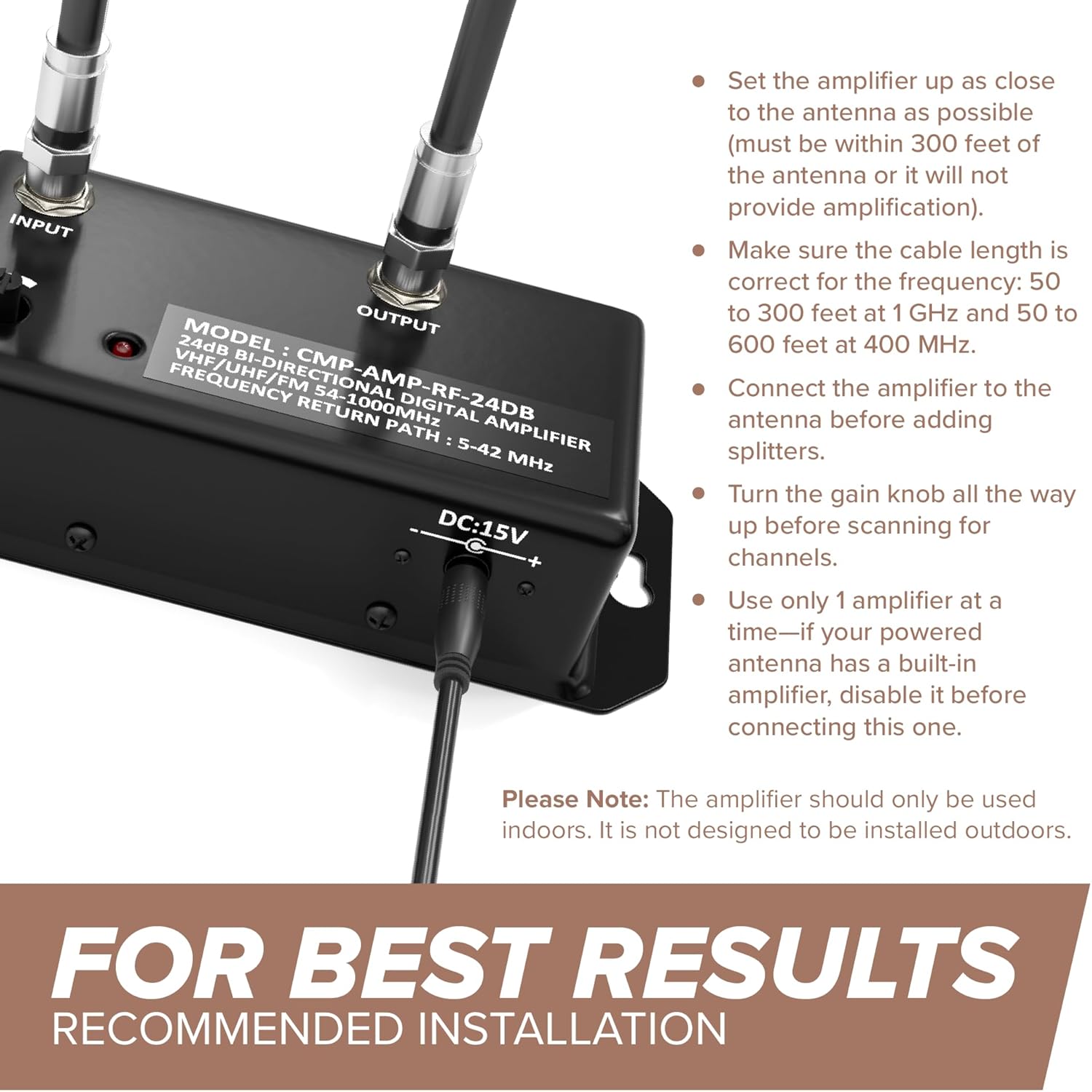 Digital TV Antenna Amplifier Kit – Adjustable 24dB Signal Booster with RG6 Coaxial Cable, Supports NTSC/ATSC/FM/UHF/VHF up to 1000 MHz – Indoor Use