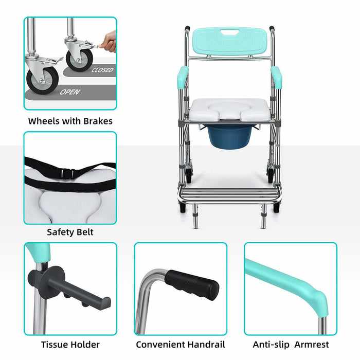 Instead of needing to make major changes to the bathroom, this wheel chair with commode can be a simple and affordable solution for enhancing accessibility and safety for the elderly. Other than using as a bath chair for elderly, it can also be used as a bedside commode chair with its removable bucket.