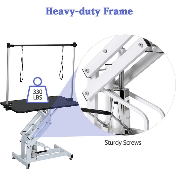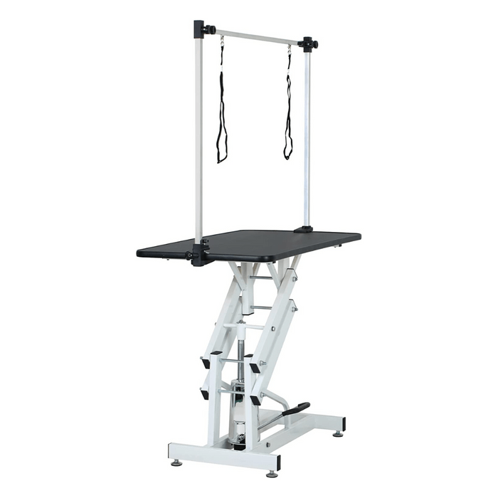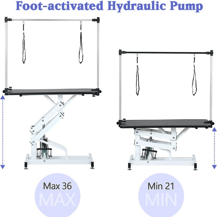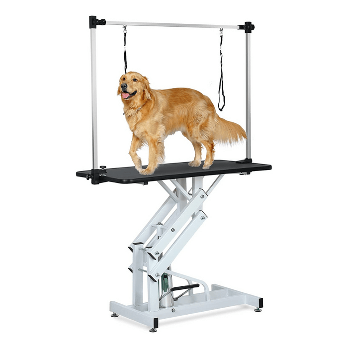 This grooming table is designed to make your pet grooming experience easy, safe, and comfortable. With its hydraulic lift system, you can easily adjust the height of this hydraulic grooming table to suit your needs, making it perfect for dogs of all sizes.