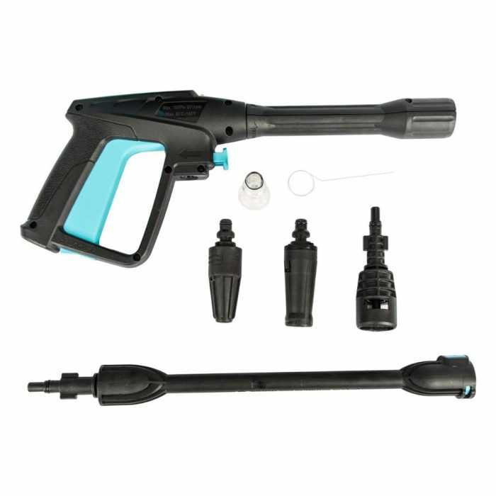 Includes a 5-meter water hose, spray and jet adapters, male filter adapter, and Karcher adapter.