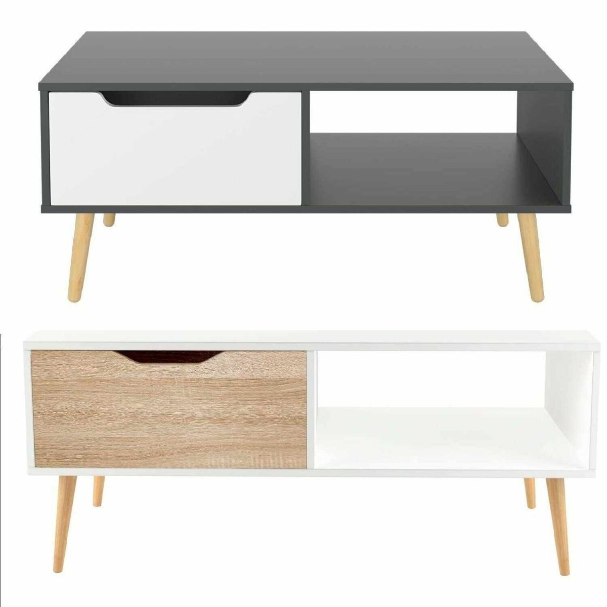 Coffee table with storage compartment – The table has 2 compartments below, the equipped drawer is bidirectional pulling, can be placed in left or right.