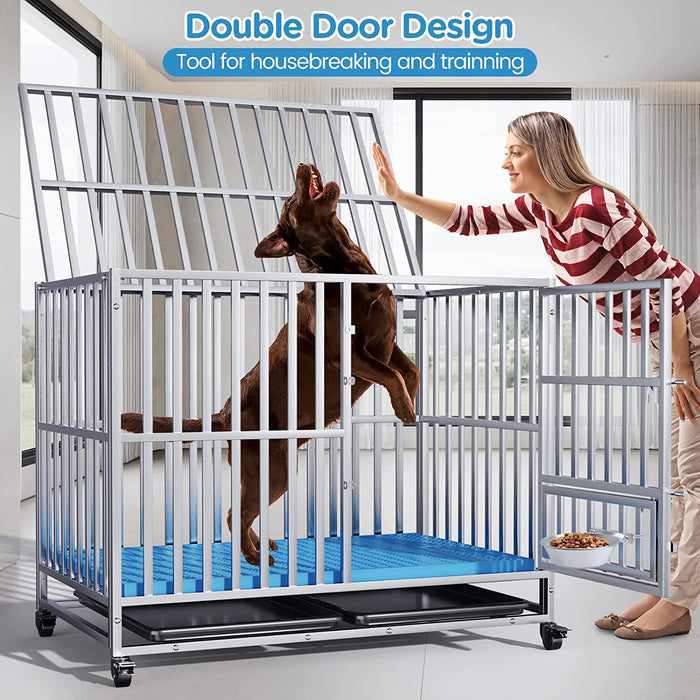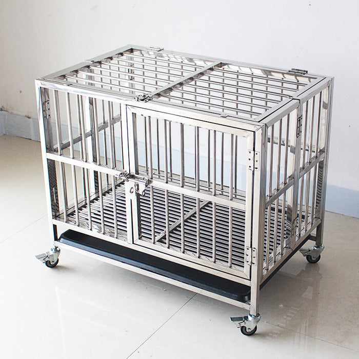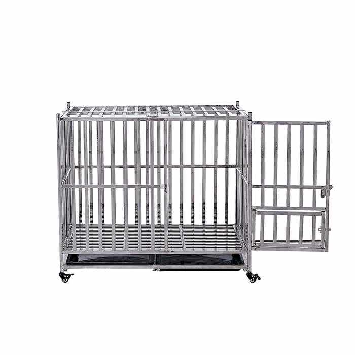 This heavy-duty dog cage features a removable tray for easy cleaning, as well as wheels that make transporting it simple. Moreover, this  escape-proof dog crate is collapsible to save space when not in use.