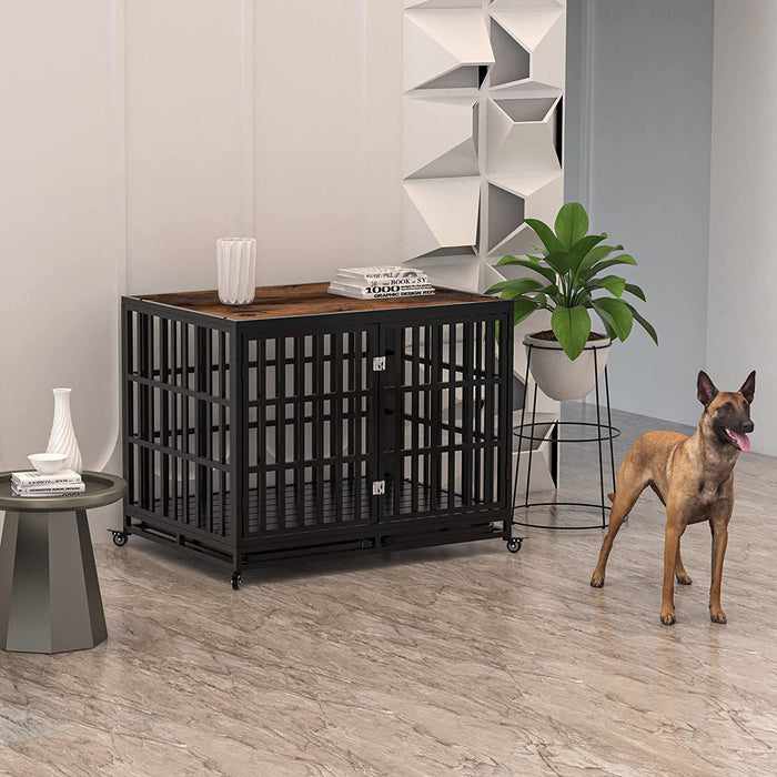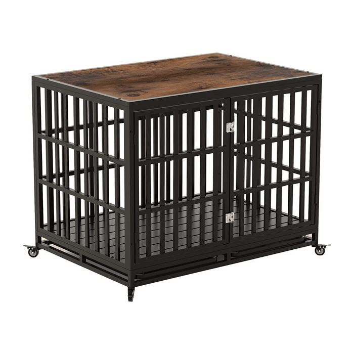This heavy-duty dog cage features a removable tray for easy cleaning, as well as wheels that make transporting it simple. Moreover, this escape-proof dog crate is collapsible to save space when not in use.