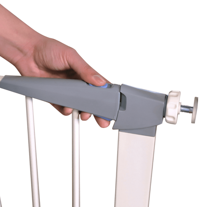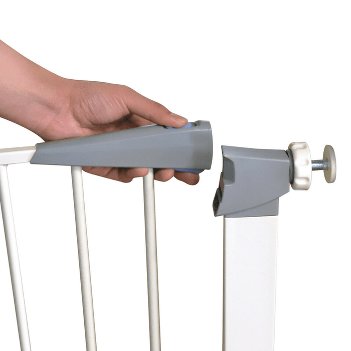 Multipurpose: This white pet gate can be used for kids or pets, on stairs or doors.