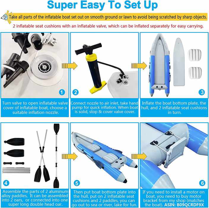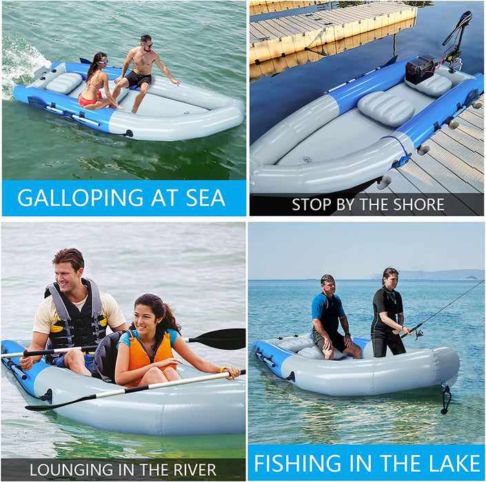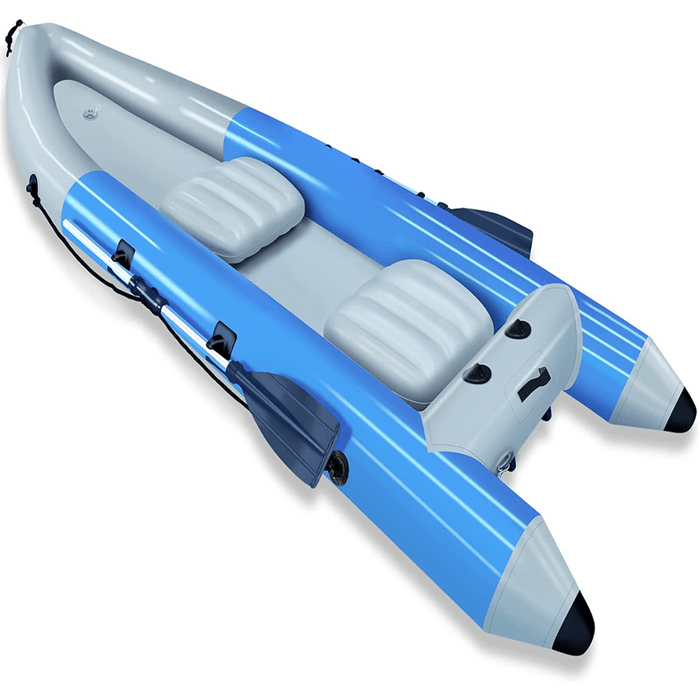 Crafted from high-quality materials, this inflatable boat is designed for maximum stability and durability. It comes complete with aluminum oars, an air pump, and a convenient carry bag, making it easy to transport and store. And with its lightweight and compact design, it's perfect for use in lakes, rivers, and islands.