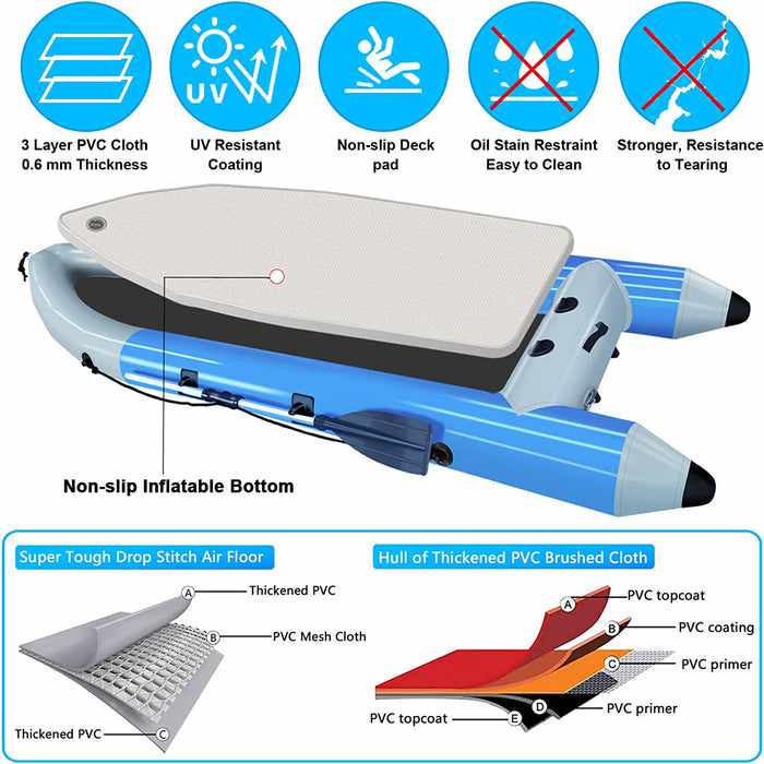 Material: 3 layer 0.6mm thickened PVC brushed cloth, Non-slip super tough drop stitch bottom