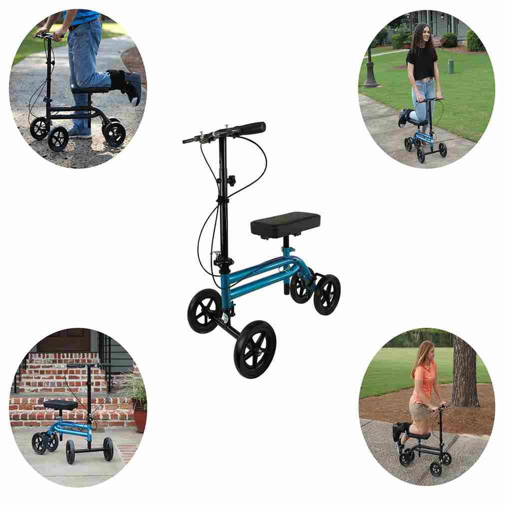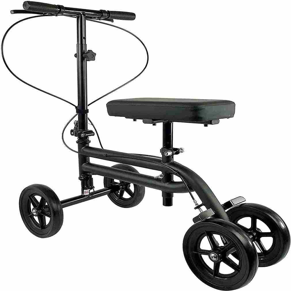 EXCELLENT CRUTCH ALTERNATIVE : More comfortable and stable than crutches, this affordable knee walker is made for both indoor and outdoor use, with four wheels for easy steering and balance.
