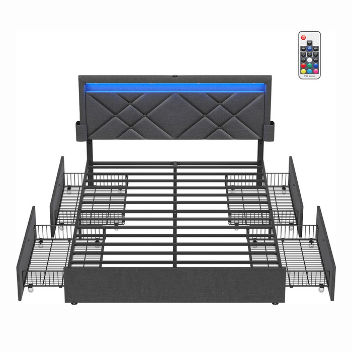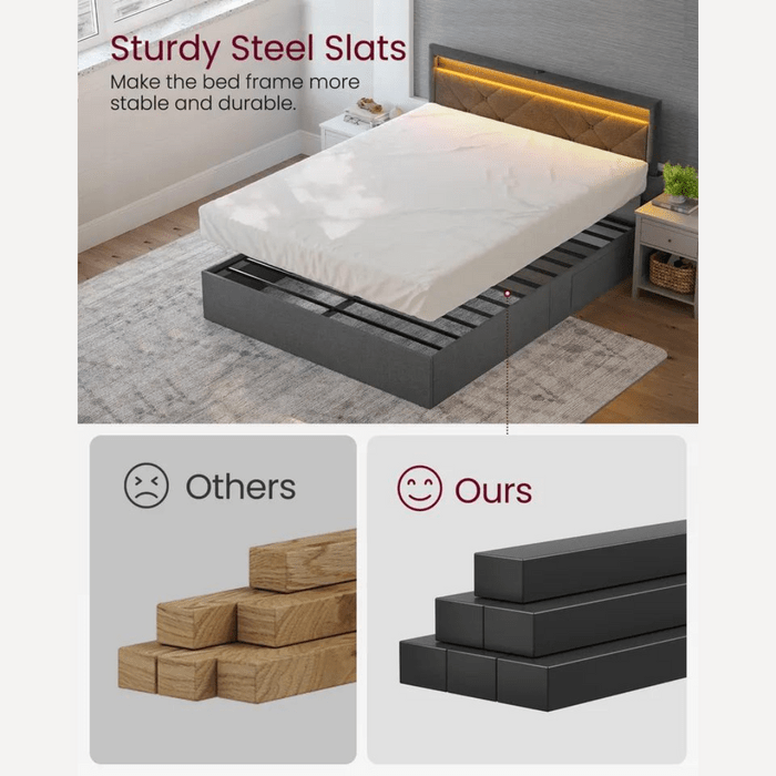 LED Queen Upholstered Bed Frame With Headboard