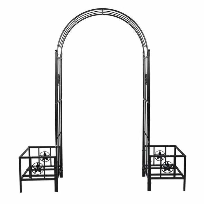 Side Planter Boxes: Two planter boxes are attached to the sides of the arbor arch.
