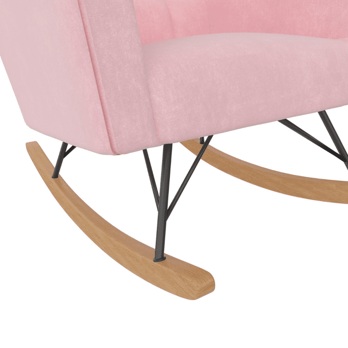 Sturdy and Durable: Featuring a sturdy frame with large contouring back and metal legs with a wooden base rocker, as well as an easy-to-clean and durable velvet upholstery