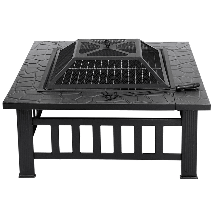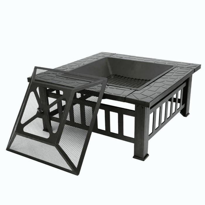 Featuring a mesh lid to prevent flying sparks or debris, this backyard fire pit is an excellent addition to any backyard. This covered fire pit includes a protective cover to keep out rain, wind, dust, and rust. The fire pit grills are sturdy and constructed of high-quality metal and heat-resistant coating to provide safe use.