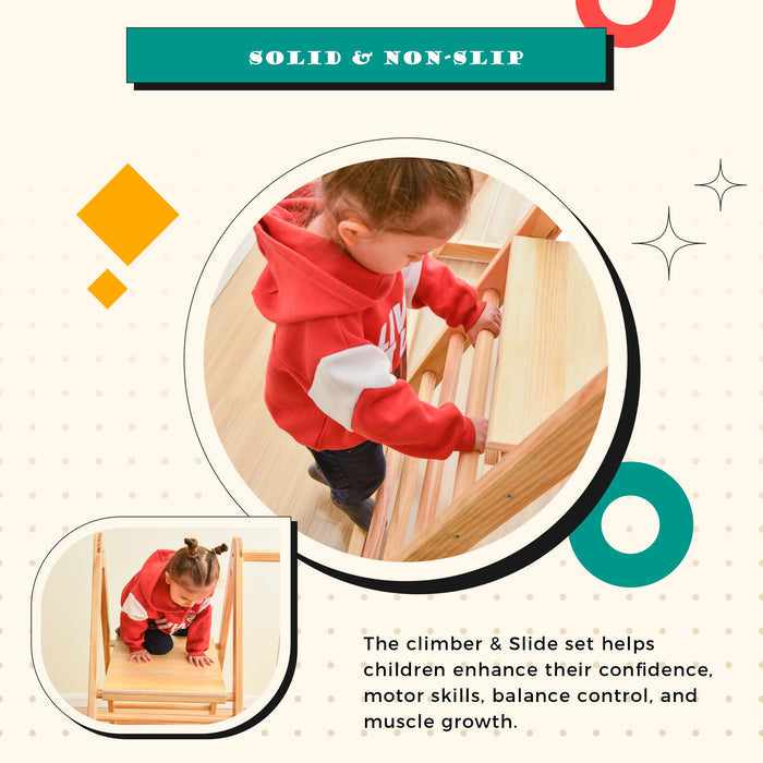 This climbing toy set comes with a slide, offering kids an exciting way to play and explore. It’s perfect for rainy days or when it's too cold outside, giving your children a safe and fun environment to play in.