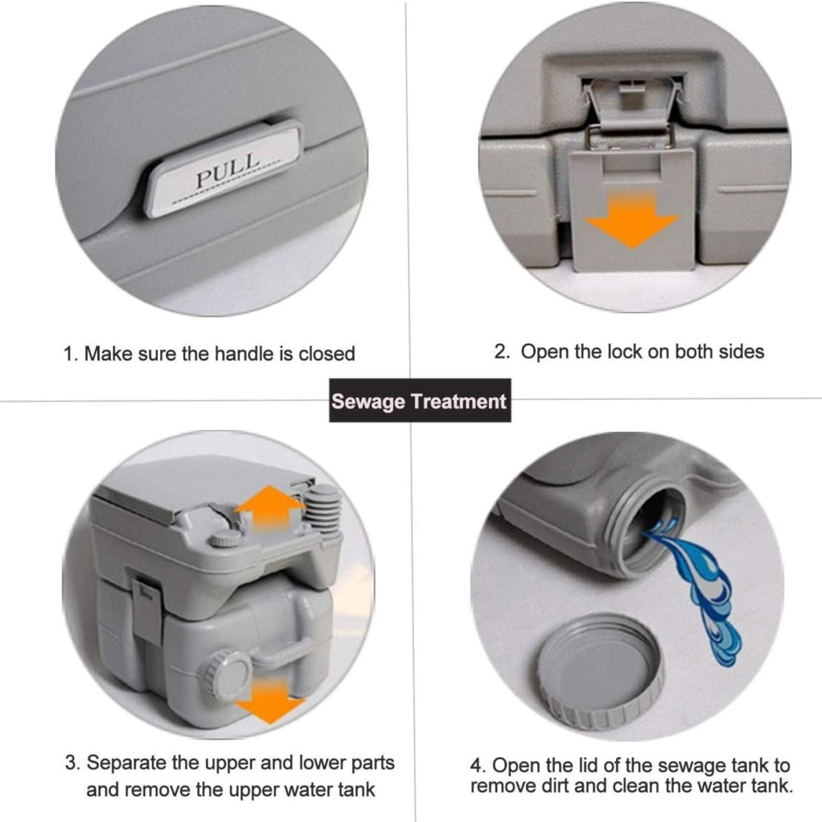 ◈ Easy Emptying : The Removable Lid Mobile Toilet with Carry Handle for Easy Emptying The Waste Level Indicator makes it simple to see the contents level by gazing at the pointer.