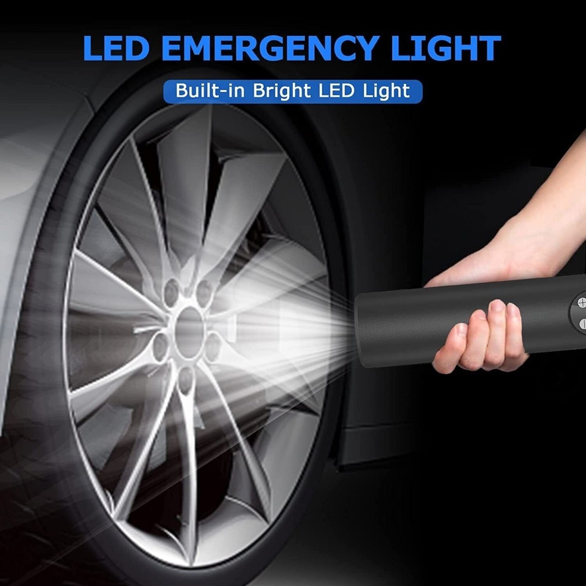 Enhance Safety with Bright LED Light: In case of emergencies, you don’t have to worry about working in the dark. The integrated bright LED light makes it easy to use the compressor in low light conditions, ensuring that you can inflate your tires safely, no matter the time of day or night. Whether you're stuck on a dark roadside or your driveway, this added feature gives you peace of mind.