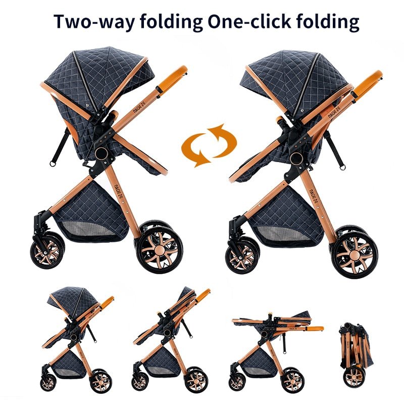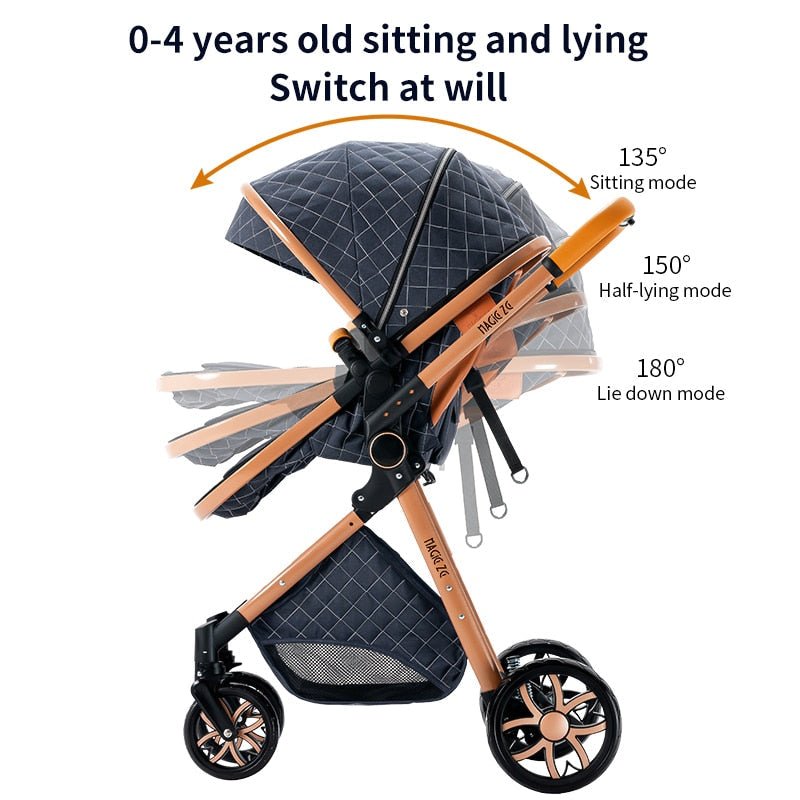 PREMIUM BABY STROLLER – Compatible with babies aged 0 to 36 months; load capacity of 0 to 15kg. The baby carriage’s seat is adjustable, allowing the baby to face either mom or the street.