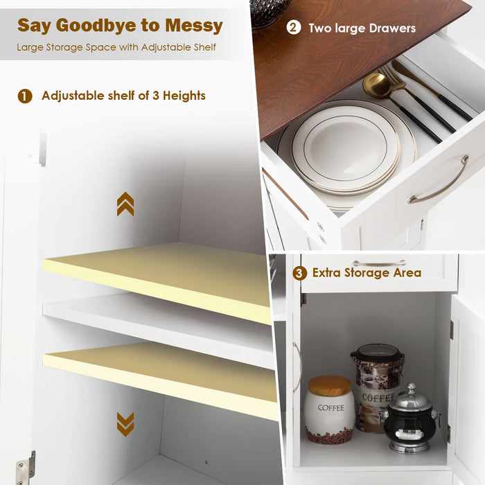 Overall, the kitchen sideboard cabinet is a versatile and practical piece of furniture that offers plenty of storage space and adds a touch of style to your home. With its elegant design and high-quality construction, this white kitchen hutch is a must-have for any home, and is sure to impress your guests with its timeless appeal.