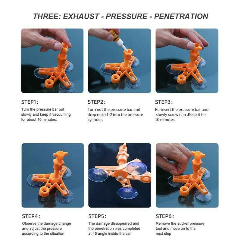 Simply region the doling out head with suction cups over the broken area, fill the resin, twist to use pressure, and witness the cracks disappear proper earlier than your eyes.